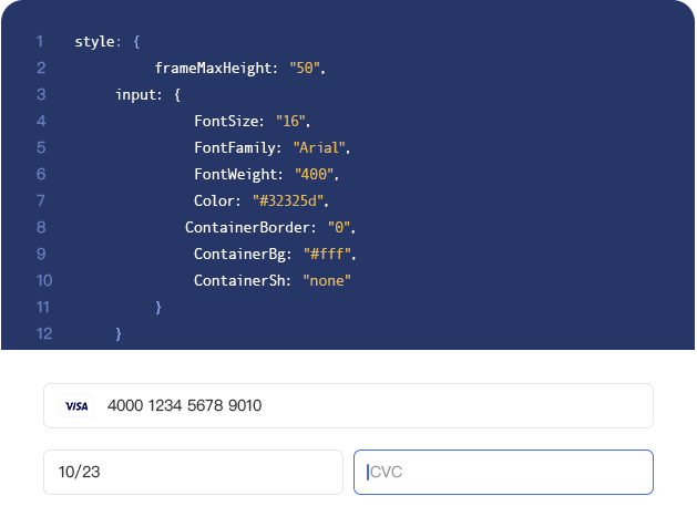 • Keep full control of your checkout page UI by embedding our JavaScript SDK